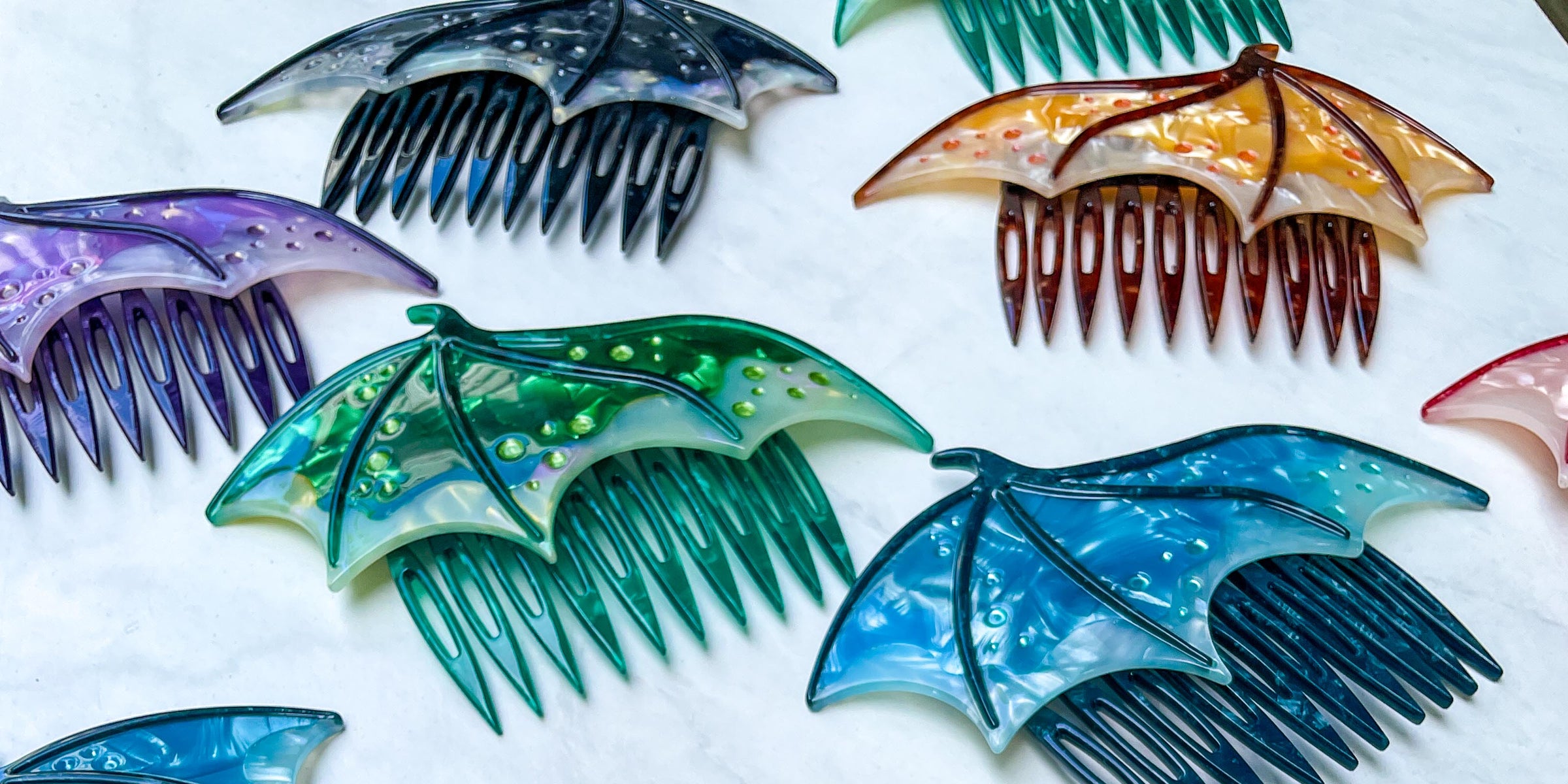 Our hair accessories are crafted from durable acetate made from plant cellulose—so they’re designed to bend, not break, if accidentally dropped. Because as the main character of your story, you shouldn’t have to worry about your hair staying put while spending long hours in the library, battling the villain… or let’s be honest...kissing them.