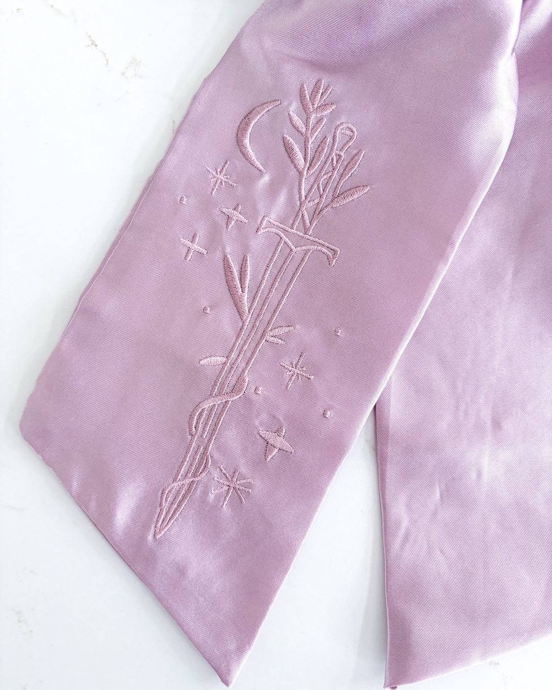 - A Sword Embroidered in Coordinating Color Thread